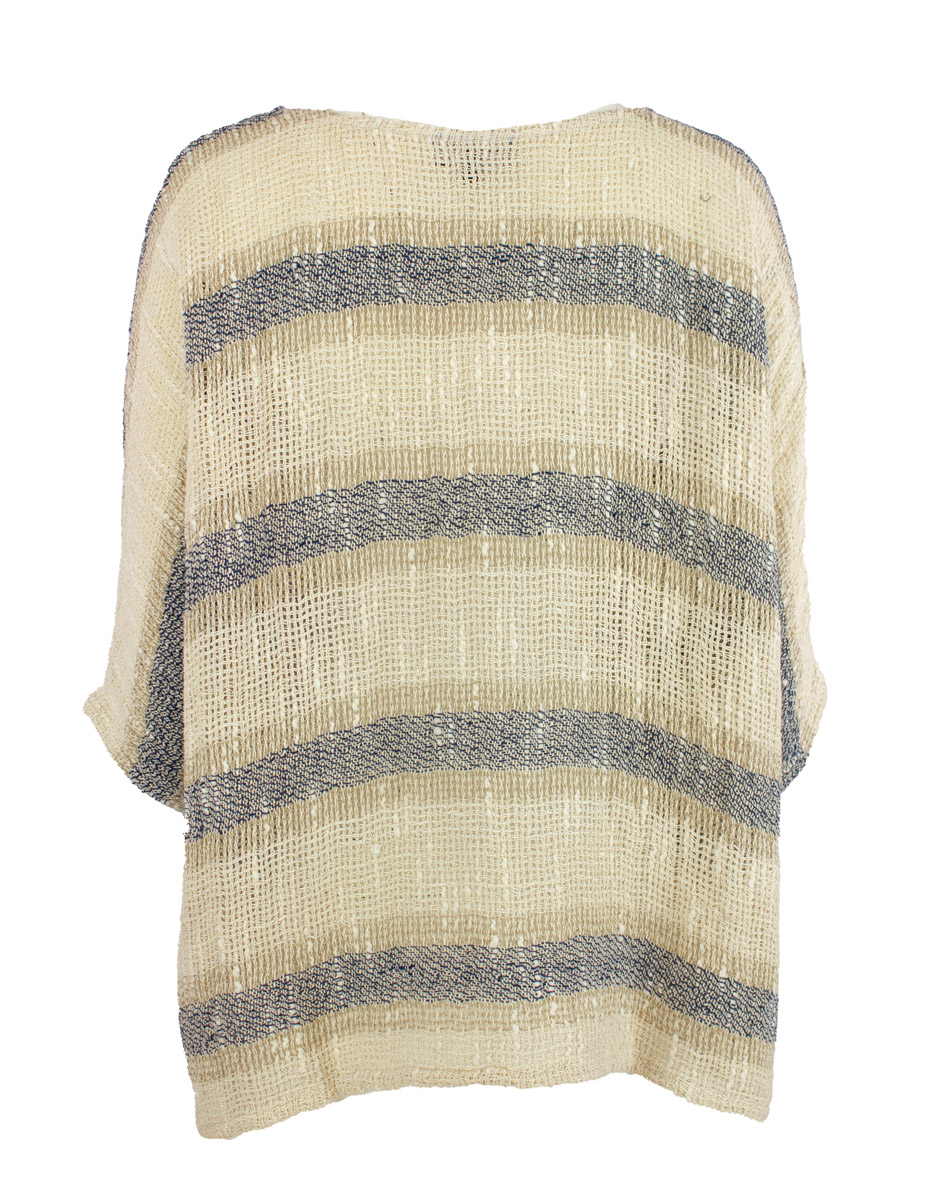 Eläväpintaista ja harvaan kudottua pellavaa. Karkeahko ja luonnonmukainen pellava paranee ja pehmenee käytössä. Rennossa puserossa on laakea pääntie ja olkasaumaton hiha. Laatikkomainen malli, jonka väljä istuvuus näyttää hyvältä niin farkkujen kuin hameiden kanssa. Värityksenä on luonnonvaaleaa, beigeä ja sinistä.