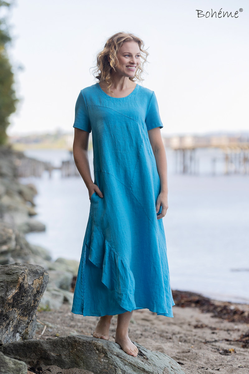 Bohéme pellavamekko, turkoosi