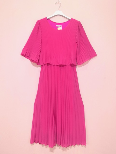 Tyylikäs ja kauniin keveä mekko, joka sopii erityisesti juhlasesonkiin! Yläosasta väljästi istuva ja tiheästi pliseerattu, sekä pyöreä pääntie. Hihat ovat väljät ja juuri sopivan pituiset ja peittävät, suunnilleen kyynärpäähän asti. Hame-osuus on leveämpää pliseerausta. Mekossa on hyvin joustava vuorikangas, joten siitä ei kuulla läpi. Vyötäröllä kulkee kuminauha, joka joustaa reilusti. Värinä kirkas pinkki.