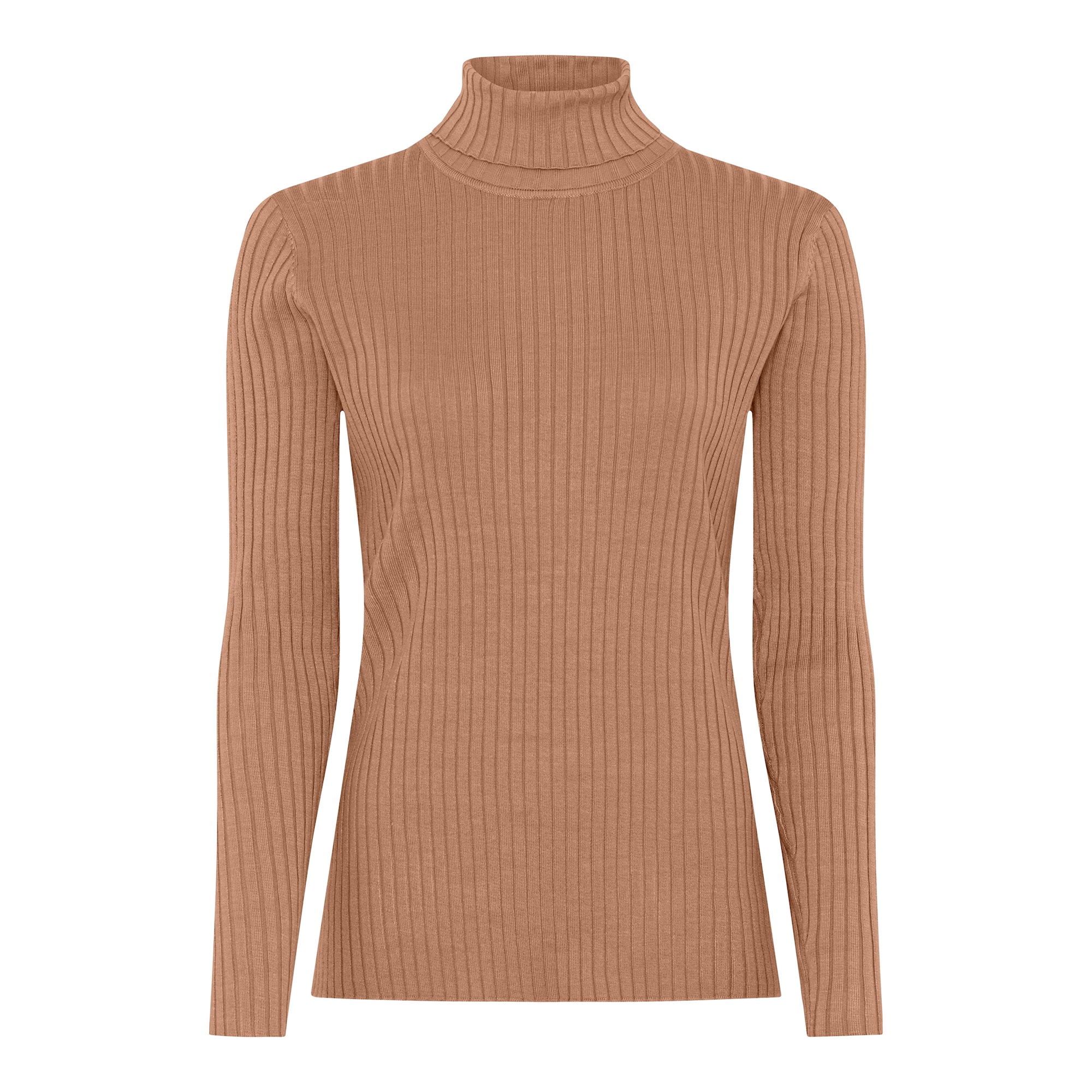 Hyvin joustava ja himmeästi hohtava konjakinruskea pooloneule. Helposti yhdisteltävä yläosa toimii niin farkkujen kuin hameiden kanssa ja puet sen myös juhlaan. Täyspitkä hihanpituus ja korkea poolokaulus. Materiaali on helppohoitoinen ja hengittävä, sekä pehmeä ihoa vasten.