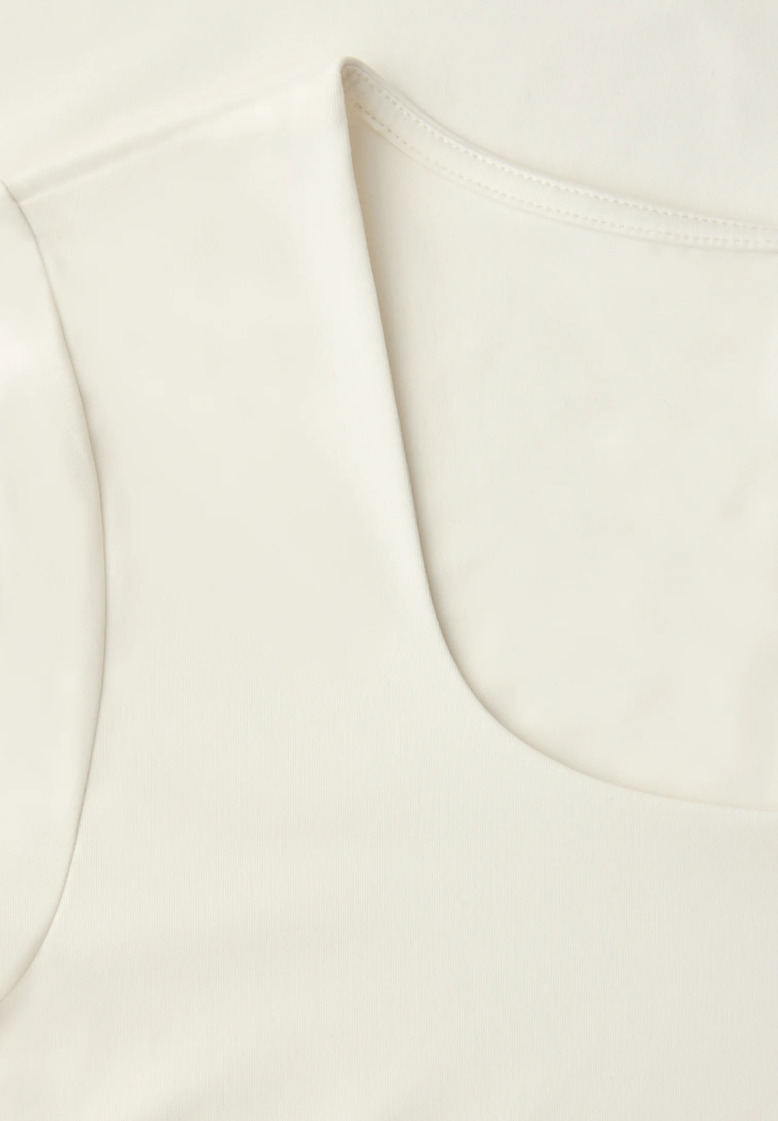 Neliskanttisella pääntiellä ja lyhyellä hihalla oleva yksivärinen t-paita. Etukappale on kaksinkertainen ja istuvuus napakka. Sopii parhaiten aluspaidaksi, materiaali on erittäin joustavaa ja liukaspintaista, joka muistuttaa uimapukukangasta.